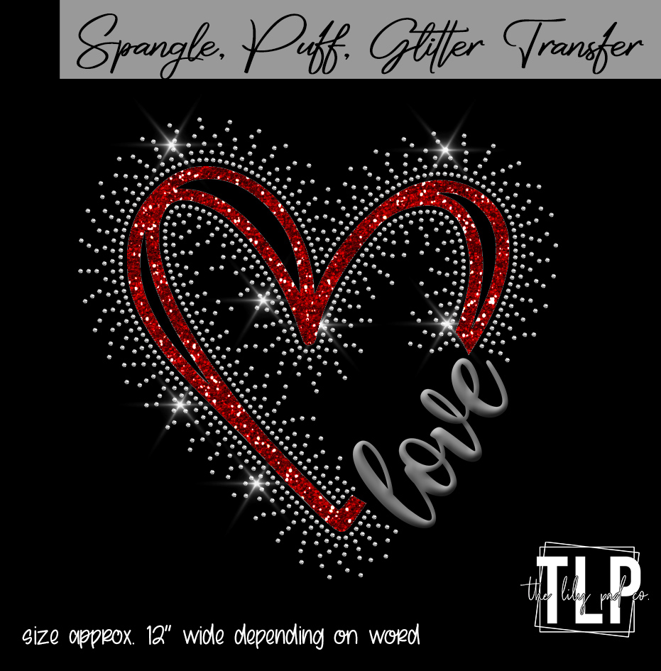 The transfers are  top quality spangles – pretty much a sequin without the hole,  that are heat-applied using a heat press. Spangles are holographic or metallic and have a soft hand on your garments. They are not raised like your typical rhinestones , they lay flat on the shirt as like HTV.  The amazing light refraction both indoor and out is sure to be a fashion statement for all.