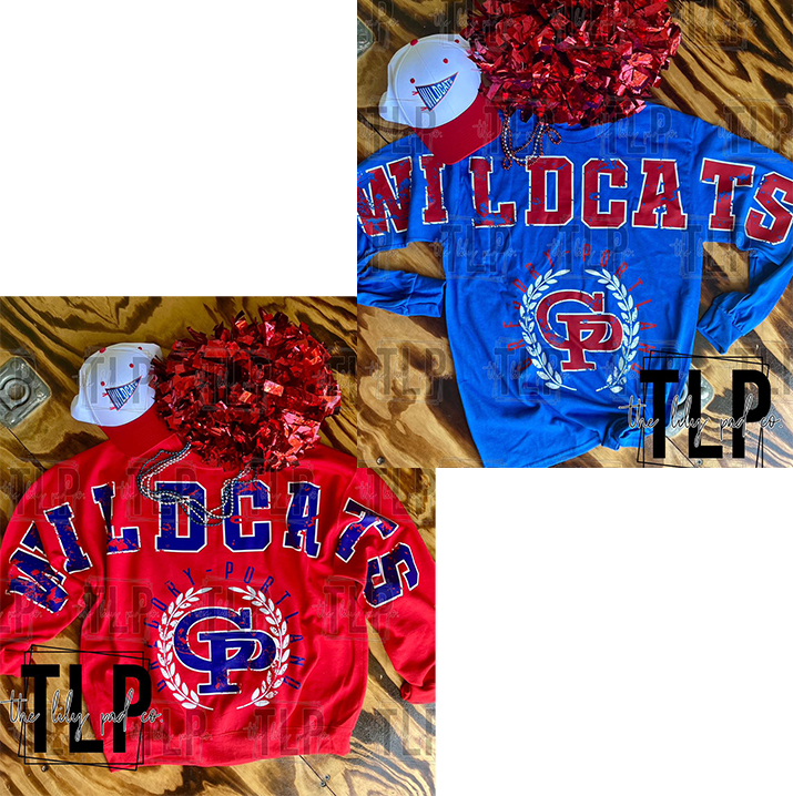 Be the first to review “Calallen Wildcats Oversized Grunge Crest Mascot Sweatshirt-Long Sleeve Graphic Top”