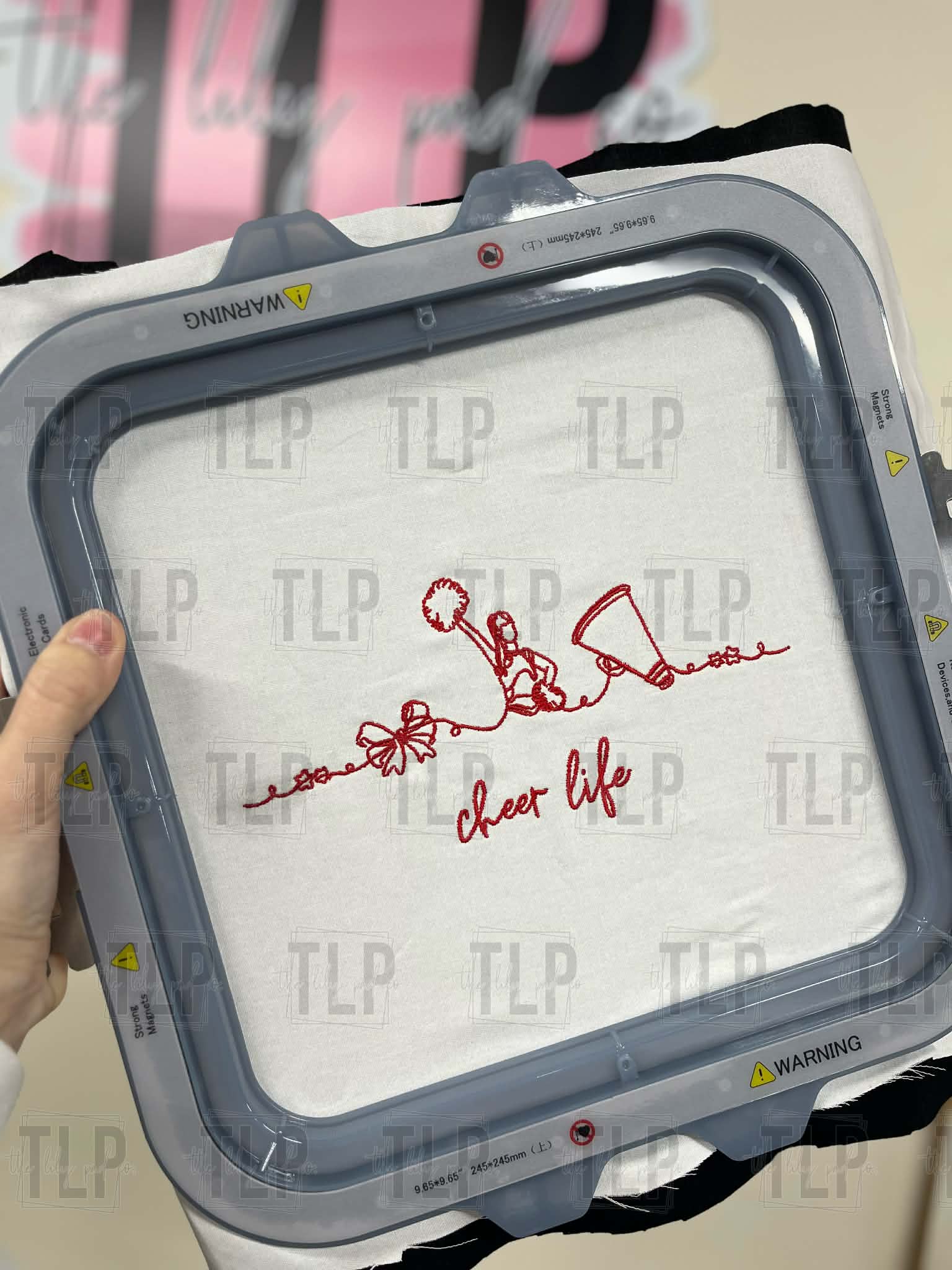 Show your spirit in style with our Cheer Life Embroidered Top — the perfect blend of comfort, team pride, and timeless design. Featuring detailed pink embroidery of megaphones, bows, and a pom-pom, this top adds a subtle yet spirited touch to your cheer wardrobe.