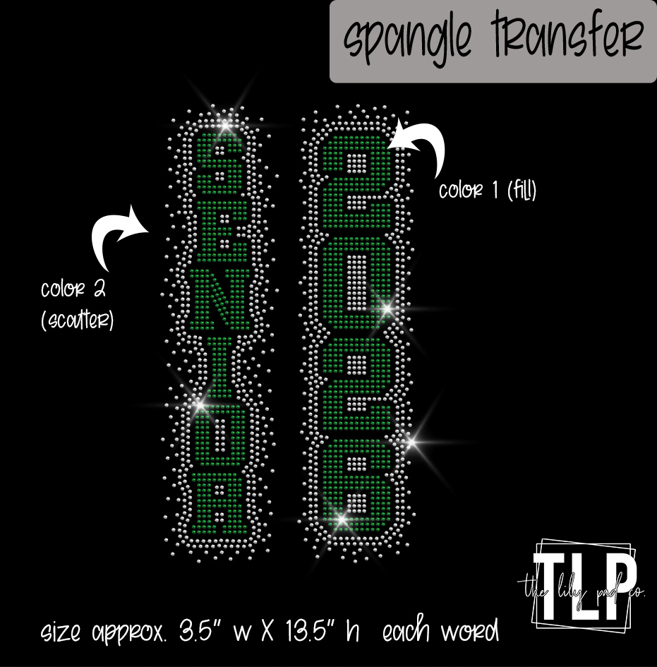 The transfers are top quality spangles – pretty much a sequin without the hole, that are heat-applied using a heat press. Spangles are holographic or metallic and have a soft hand on your garments. They are not raised like your typical rhinestones , they lay flat on the shirt as like HTV. The amazing light refraction both indoor and out is sure to be a fashion statement for all.