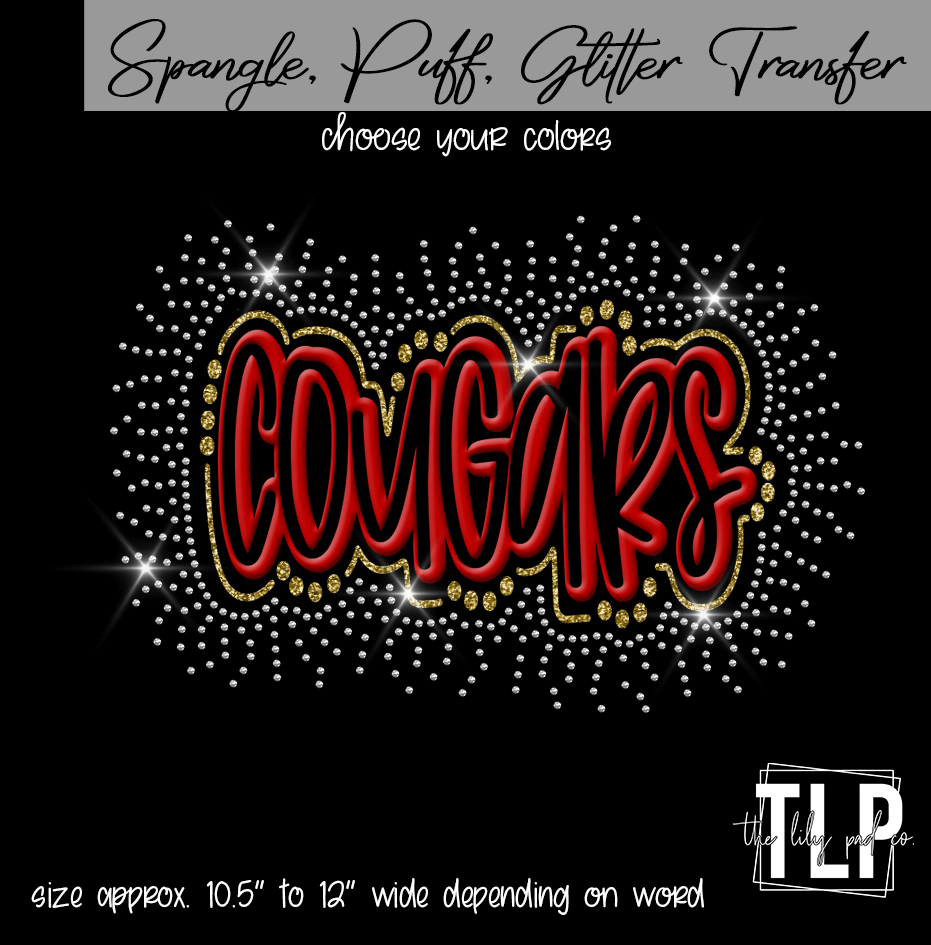 Cougars Puff , Glitter, Spangle Transfer