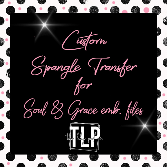 Give your embroidery projects that extra sparkle and shine with our dazzling spangle transfers! Perfectly paired with SOUL AND GRACE DESIGNS embroidery files, these easy-to-apply Spangle transfers add shimmer and style to your creations. Whether you’re customizing apparel, accessories, or gifts, spangle transfers bring a professional, eye-catching finish that makes every piece stand out.