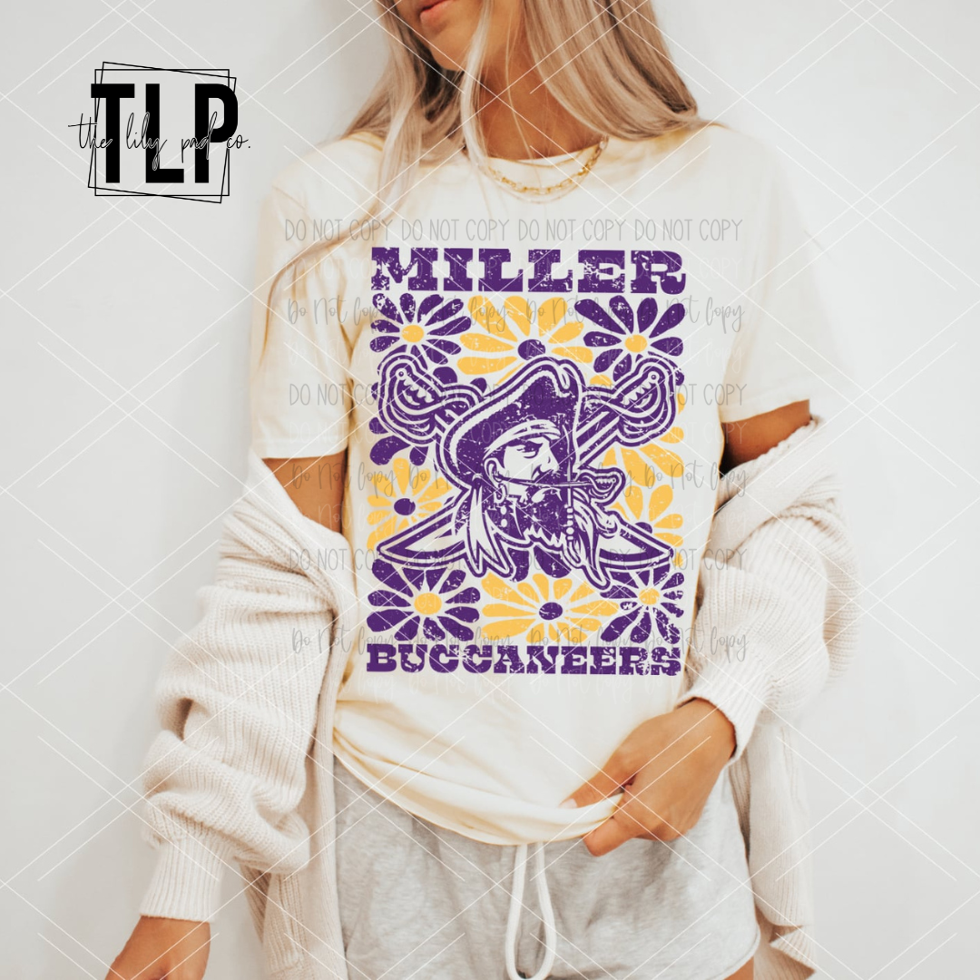 Miller Buccaneers Vintage Retro Flower Collage Graphic Tee
