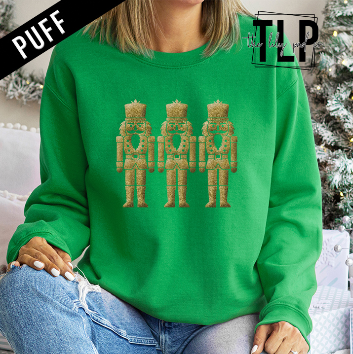 Nutcracker Trio Metallic or Glitter Puff Vinyl Transfer