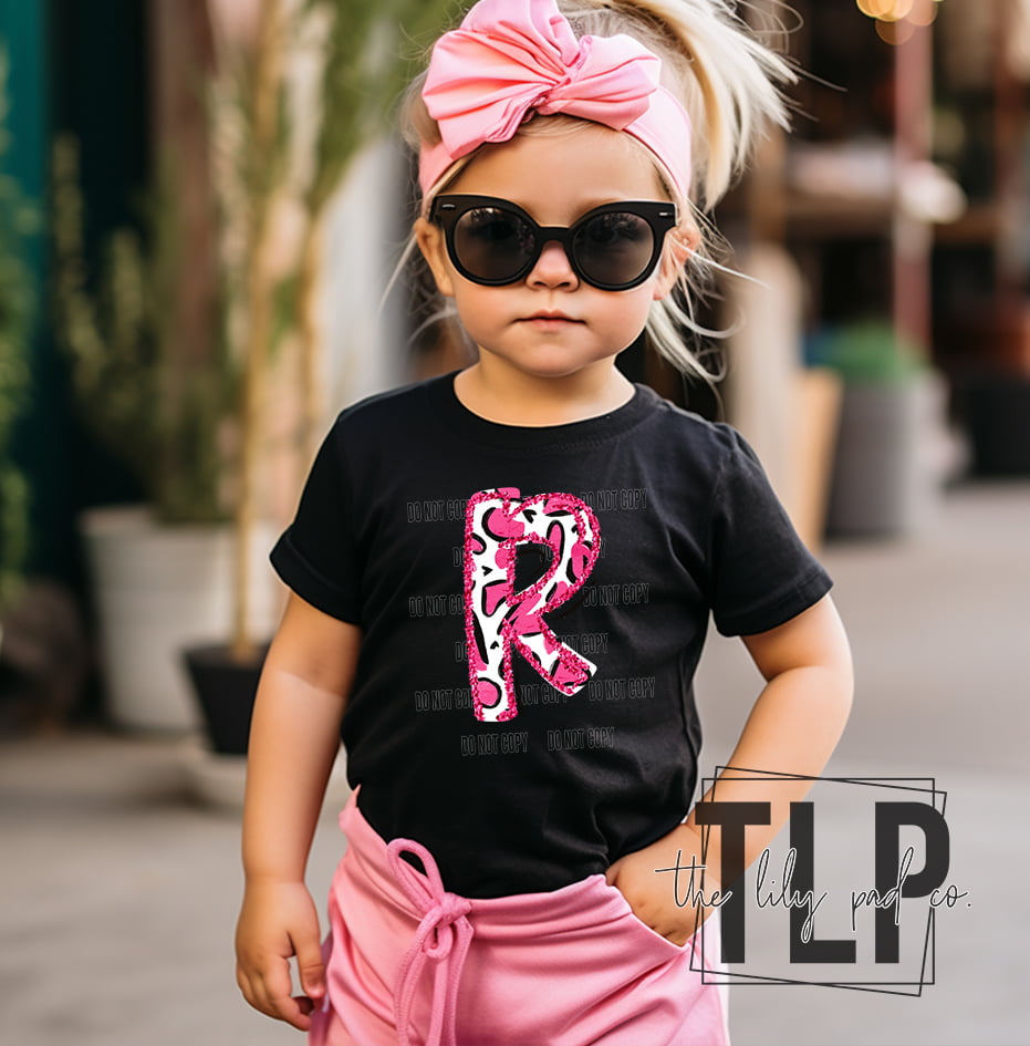 Pink Cheetah Doodle Letter Name Initial Graphic Top