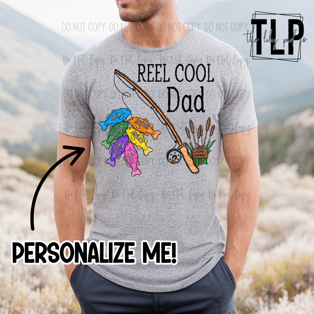 Reel Cool Dad Custom Names DTF Transfer