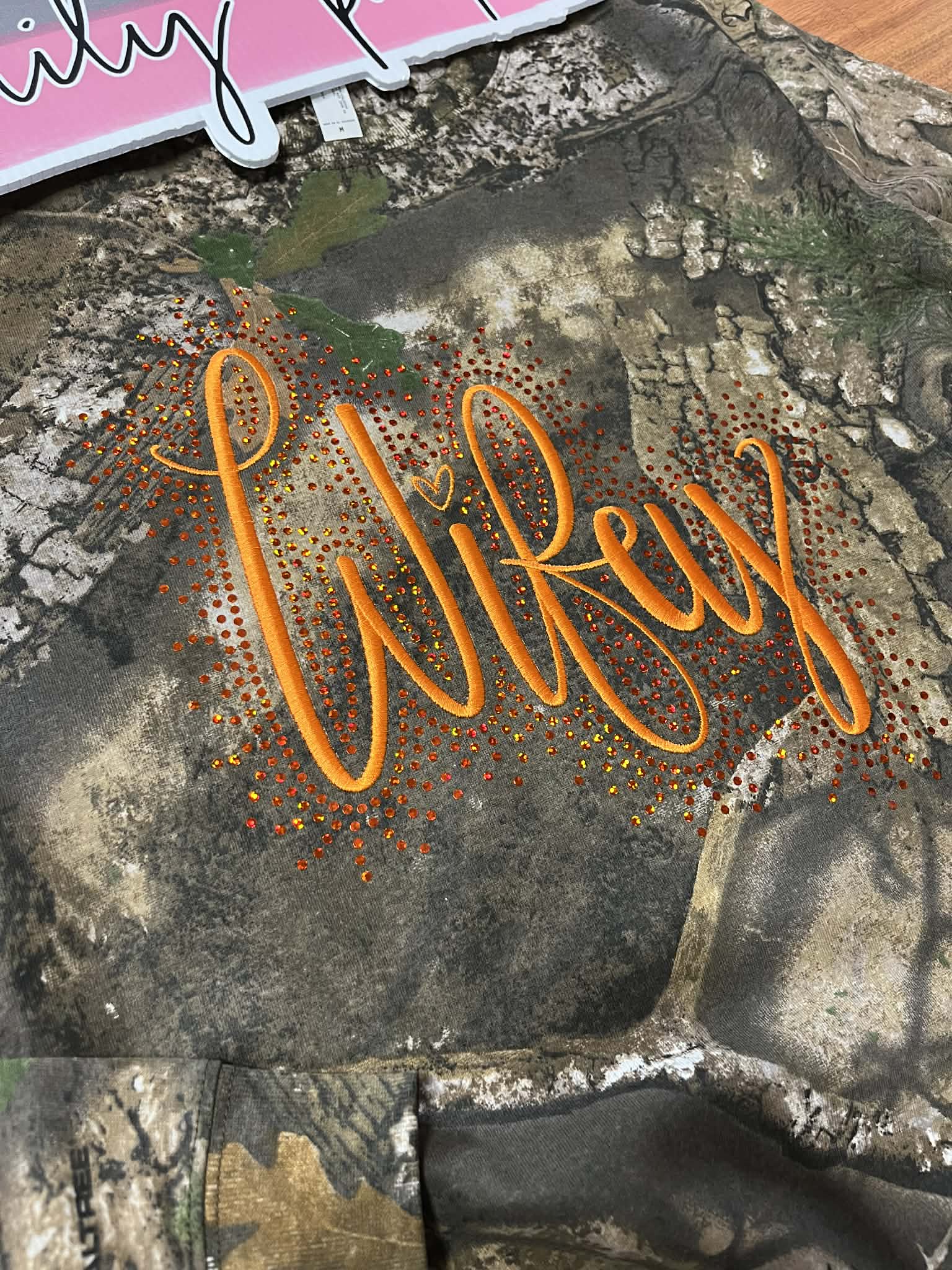 Show off your bold side with this stylish Real Camo Shirt — perfectly blending rugged charm with a touch of love. Crafted from soft, durable camo fabric, this shirt features bright orange embroidery that proudly spells out “Wifey” across the front.